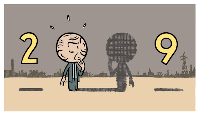 Bardín and his shadow on a suburbial landscape were guests at the new year's digital card for 2009.