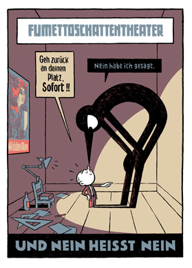 La sombra es otro personaje-concepto que me fascina últimamente. Además de en Malasombra y en Vapor -donde tiene un papel destacado- he trabajado el tema en varias ocasiones este último año. He aquí uno de los bocetos preparatorios y el arte final de la serigrafía a 4 tintas que he hecho para el portafolio conmemorativo del vigésimo aniversario del festival Fumetto, en Luzern, que se publicó el pasado abril. La caja, en tirada limitada de 350 ejemplares y formato A3, reúne serigrafías de 20 de los dibujantes invitados al festival a lo largo de su historia: Daniel Clowes, M. S. Bastian/Isabelle L., Lorenzo Mattotti, David Shrigley, Christophe Blain, Anke Feuchtenberger, Nicolas DeCrécy, Miguelanxo Prado, Edmond Baudoin, David B., J. C. Menu, Max, Nicolas Mahler, Thomas Ott, Olaf Breuning, Françoise Avril, Ever Meulen, Charles Burns, Andreas Gefe y José Muñoz